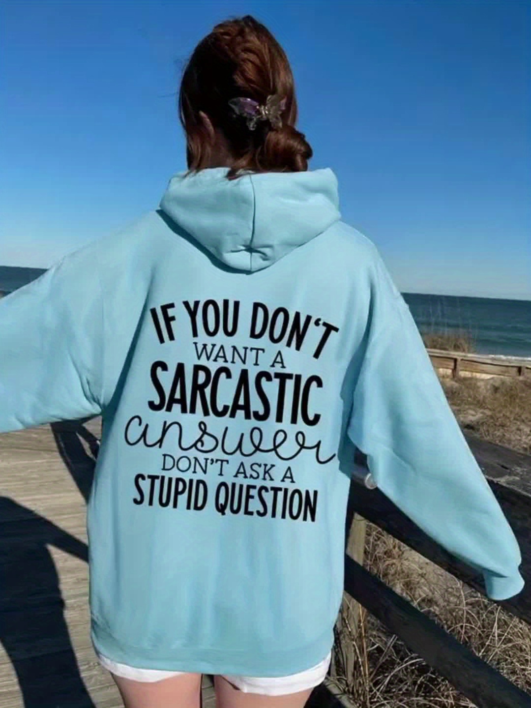 [Vibrant Alphabet Print Sweatshirt] Vibrant Alphabet Print Hooded Sweatshirt - Women's Casual 100% Polyester Knit Fabric - Drawstring Hood, Fall/Winter Clothing