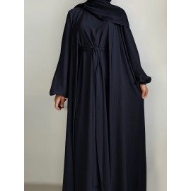 Elegant Black Lace Abaya with Contrast Lace Trim - Long Sleeve, Floor-Length, Belted, All-Season Wear, Traditional Middle Eastern Attire for Women, Cultural Attire|Elegant Abaya|Lace Trim Abaya